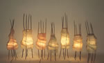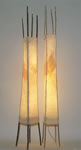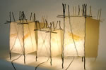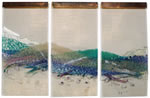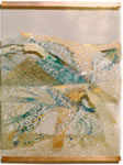 | The wall hangings and folding screens are handmade paper and other media on bronze screening. These wall hangings and sculptures are one of a kind, though existing designs can be approximately recreated in concept. She will create custom designs working from color swatches sized to suit a specific situation. With the wall hangings she has done specific designs for stairwells and other unusual areas including curved walls. The sculptures have been designed to create dramatic new environments in homes as well as large commercial facilities. Susan Hersey has been a professional artist in the Bay Area for the past thirty-five years. Her work is represented in collections worldwide. |