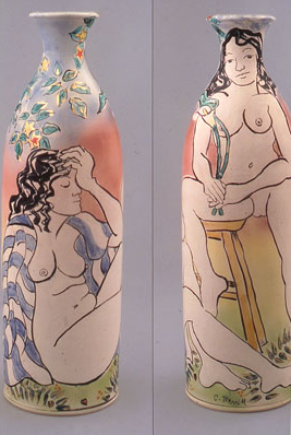 2007, (Views A, B), Size: H31" x D11", Medium: Multi-fired, wheel thrown vase with majolica galze and gold luster.