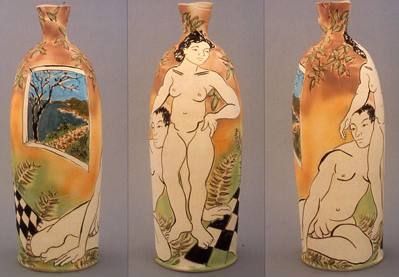 2007, (Views A, B, C), Size: H31" x D10", Medium: Multi-fired, wheel thrown vase with multi-colored terra sigilatta.