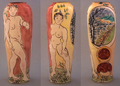 2007, (Views A, B, C), Size: H31" x D11", Medium: Multi-fired, wheel thrown vase with majolica glaze and gold luster.