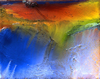 | The painting is my palette; as I move it, guiding the flow of the paint, the substances interact and the colors blend. With each successive layer, colors are effaced and reappear, and the material dissolves and rebuilds itself. Every painting is a sort of intimate dance with matter, a dialogue between my will and the chemical reaction of the colors, their disappearance and their reemergence in new incarnations. |