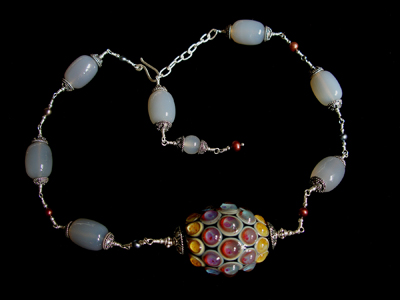 Large Lampwork Bead with Smoke Agate Beads